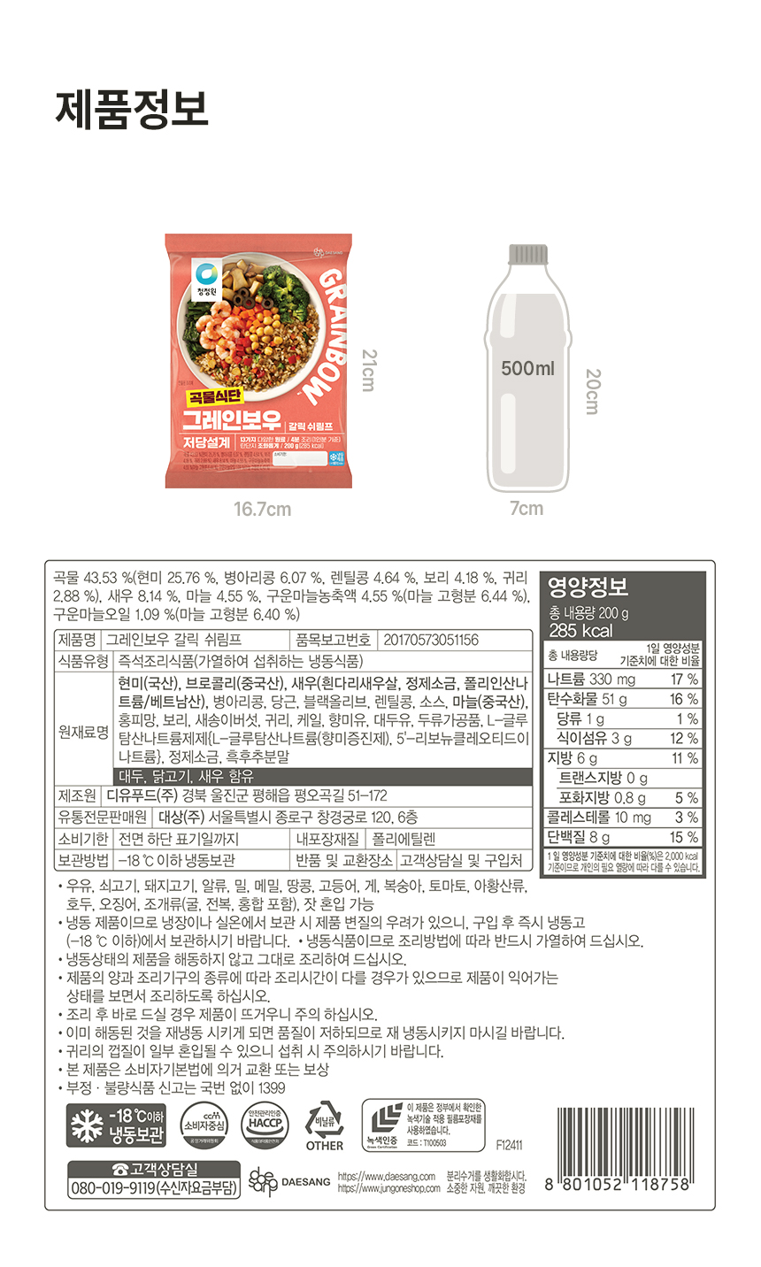 제품 제조 시점에 따라 원산지 변경으로 표시가 다르거나 유통기한으로 표시된 제품이 있을 수 있습니다. [정원e샵 고객상담실] 청정원 080-019-9119 / 종가 080-080-8866