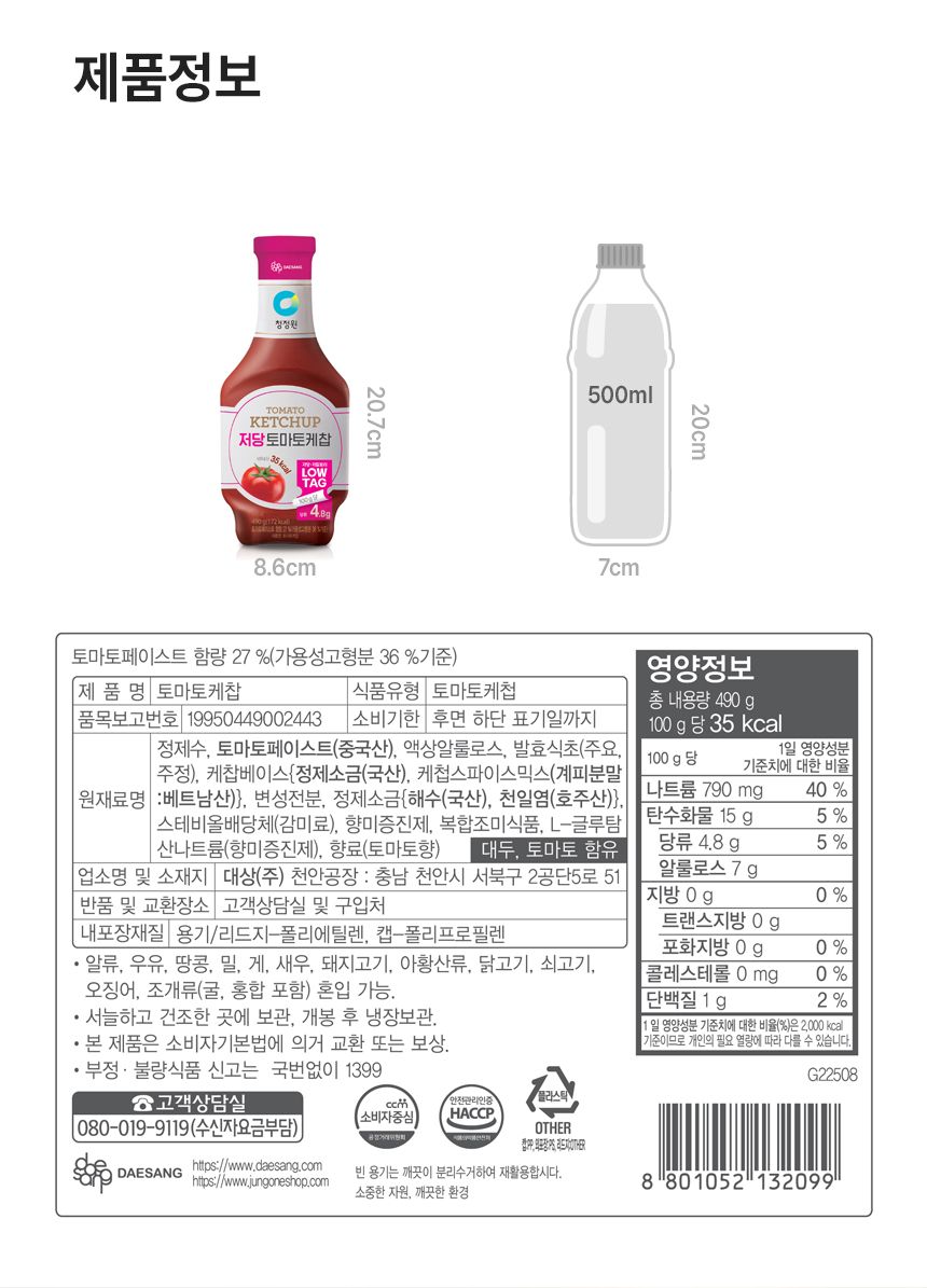 이미지 확대보기청정원 저당 케찹 490g