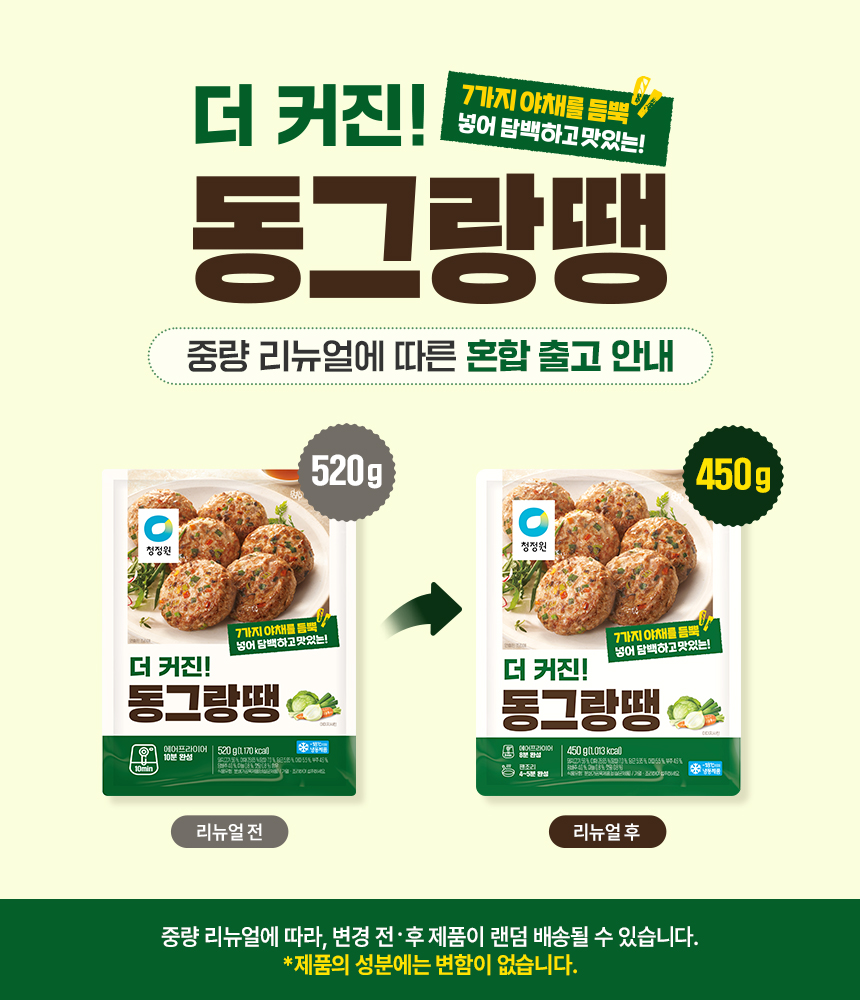 이미지 확대보기[명절행사] 더커진 동그랑땡 450g x2개+직화떡갈비 420g x2개