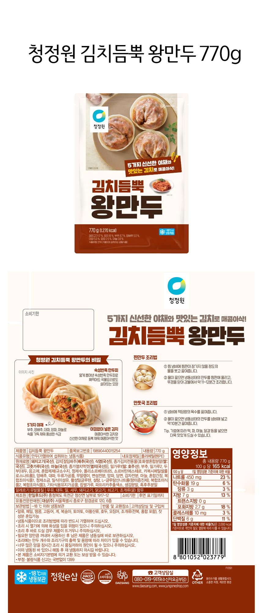 (신선식품, 냉장/냉동식품의 경우 상품가치 하락으로 재판매가 불가하므로 상품출고준비중 이후 고객님의 단순변심에 의한 교환/반품/취소가 불가합니다)