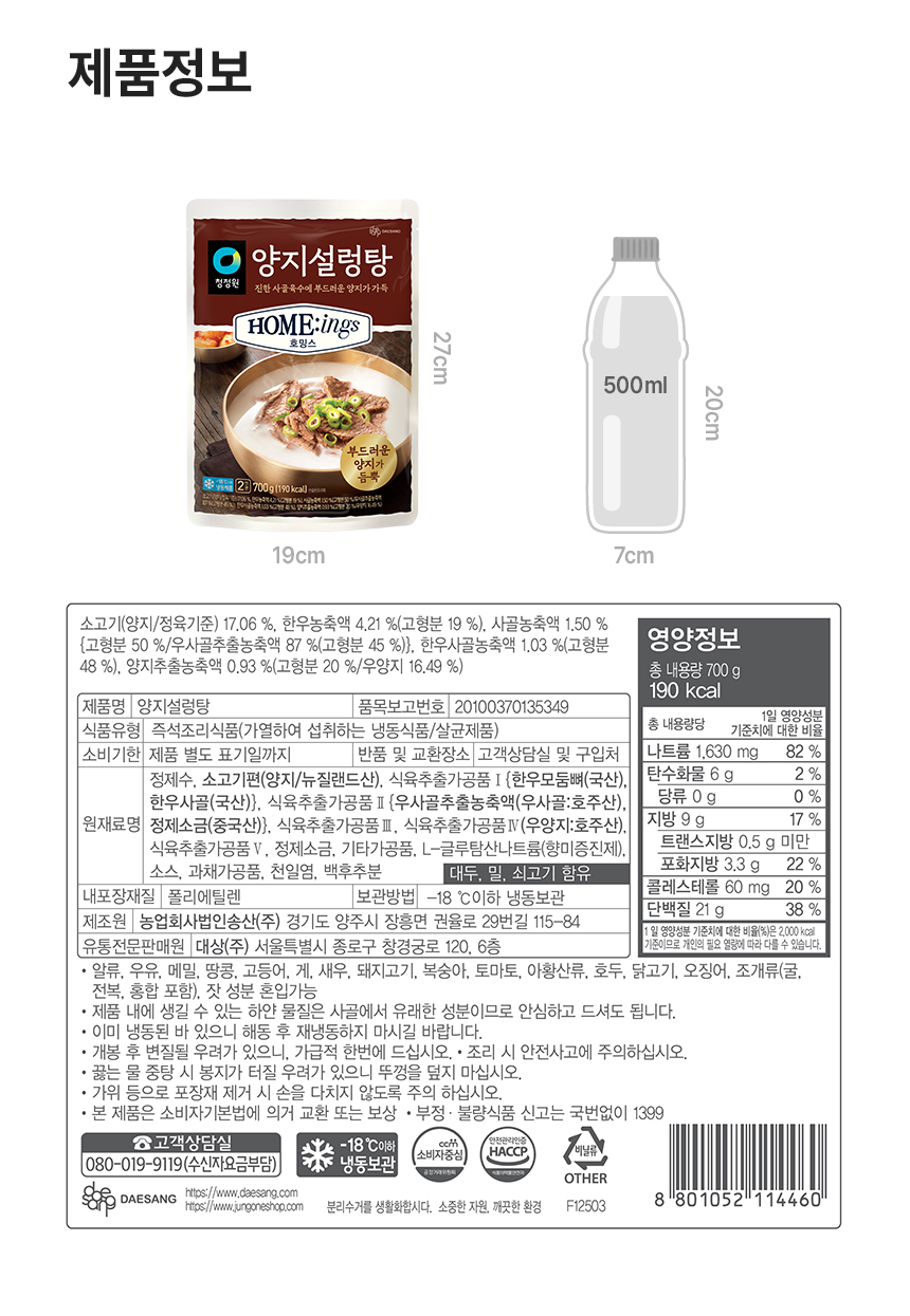 | 영양성분(영양성분 표시대상 식품에 한함) | 상품설명 및 상품이미지 참조 |