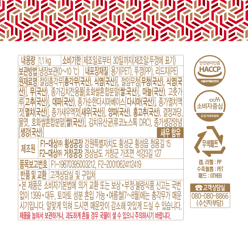 이미지 확대보기종가 총각김치 1.1kg(PET)
