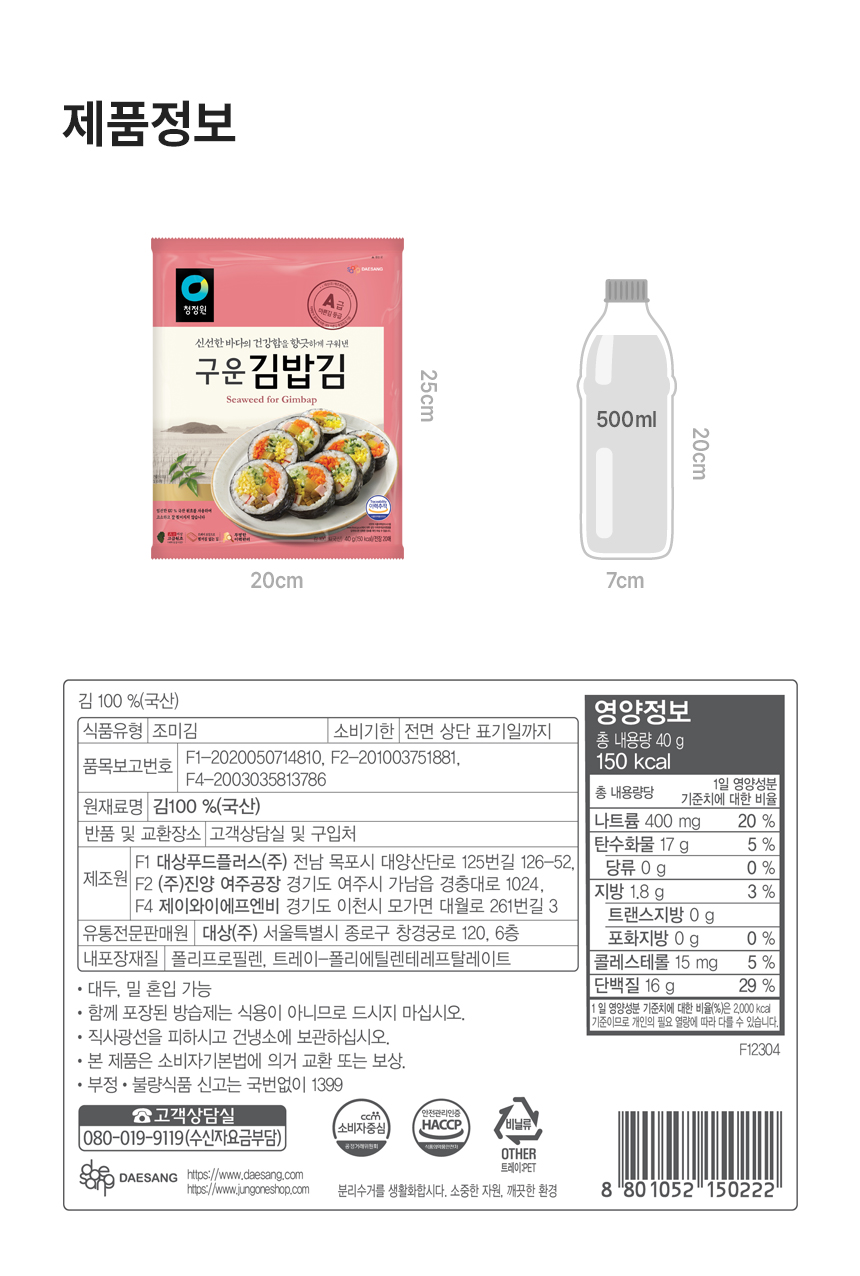 이미지 확대보기청정원 구운 김밥용 김 1절x20매