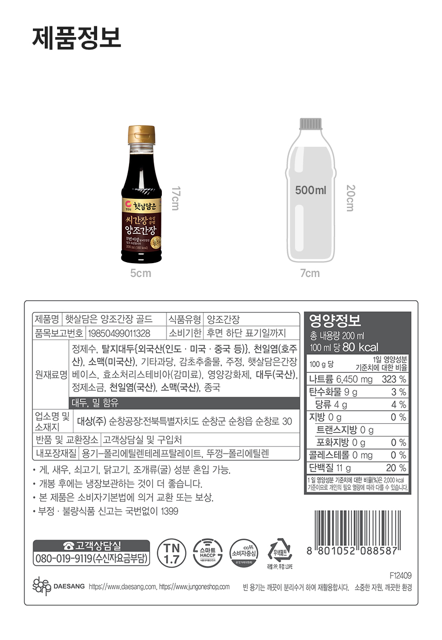 제품 제조 시점에 따라 원산지 변경으로 표시가 다르거나 유통기한으로 표시된 제품이 있을 수 있습니다. [정원e샵 고객상담실] 청정원 080-019-9119 / 종가 080-080-8866