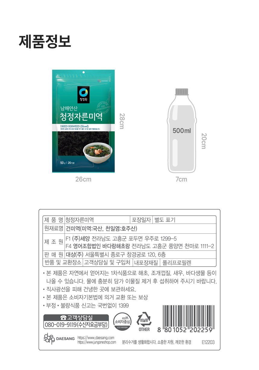 • 청정원 남해안산 청정 자른 미역 50g(지퍼)(20인분)