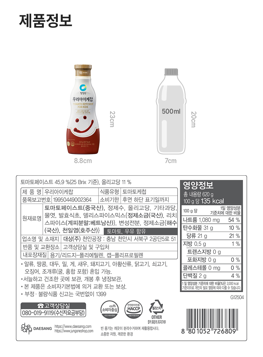 이미지 확대보기청정원 우리아이케찹 620g
