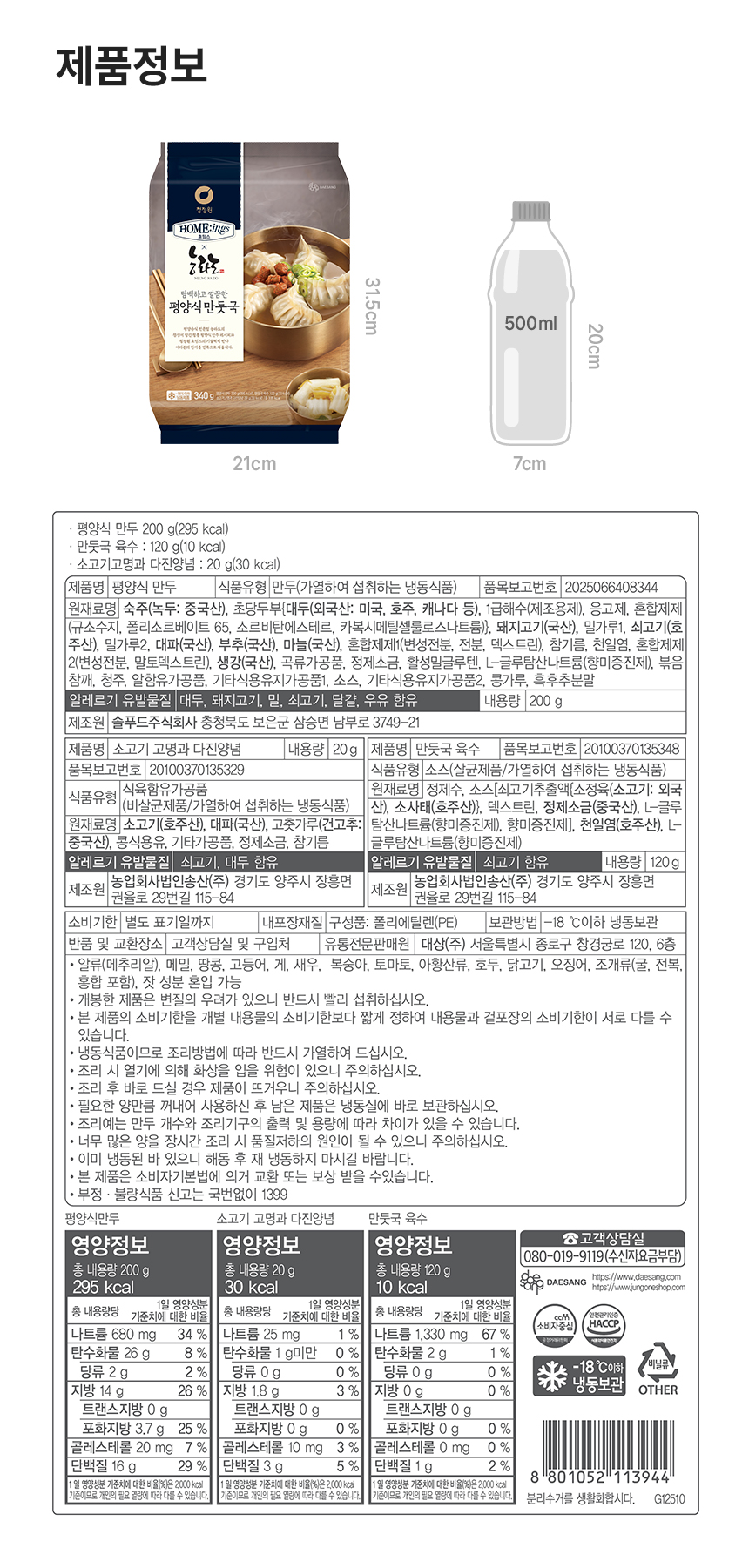 이미지 확대보기청정원 [호밍스X능라도]담백하고 깔끔한 평양식 만둣국 340g