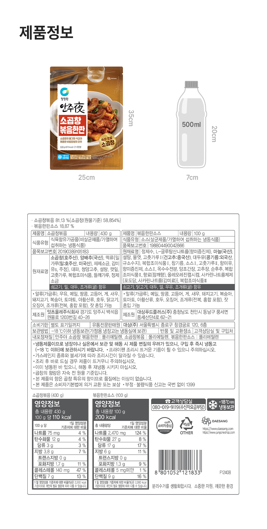 이미지 확대보기청정원 안주夜 소곱창 볶음한판 530g