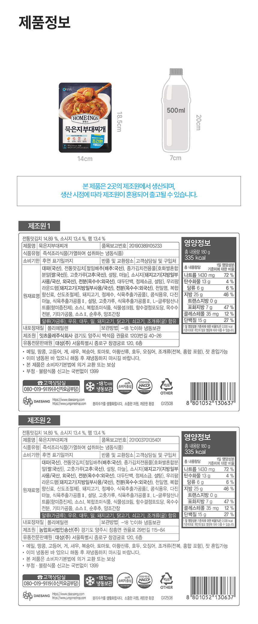 제품 제조 시점에 따라 원산지 변경으로 표시가 다르거나 유통기한으로 표시된 제품이 있을 수 있습니다. [정원e샵 고객상담실] 청정원 080-019-9119 / 종가 080-080-8866