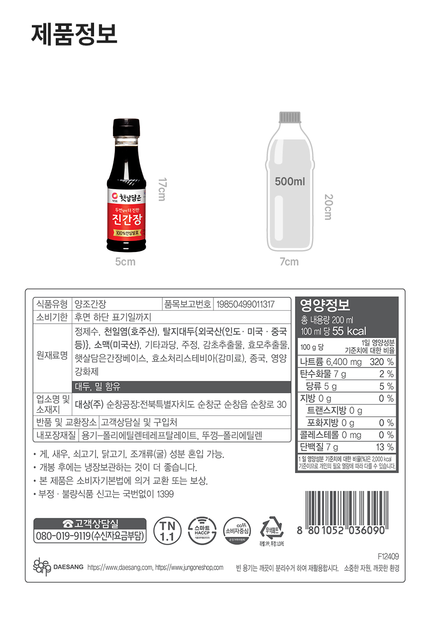 제품 제조 시점에 따라 원산지 변경으로 표시가 다르거나 유통기한으로 표시된 제품이 있을 수 있습니다. [정원e샵 고객상담실] 청정원 080-019-9119 / 종가 080-080-8866