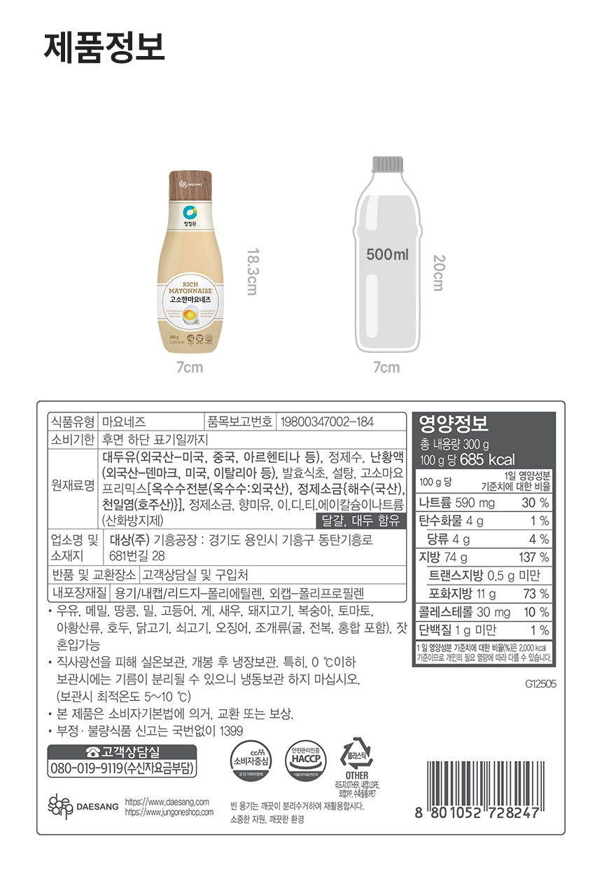 이미지 확대보기청정원 고소한 마요네즈 300g