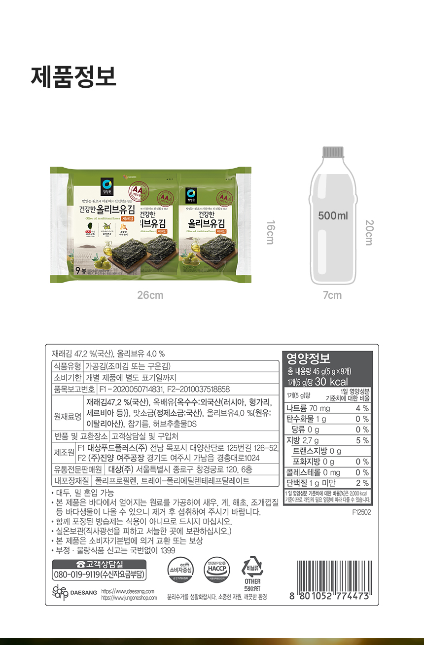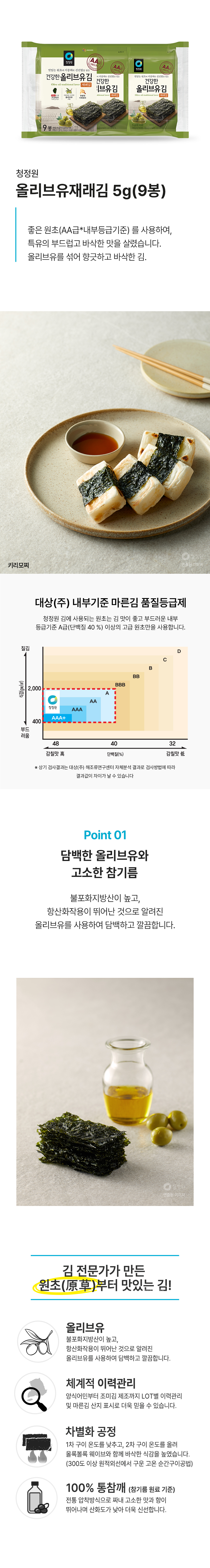 이미지 확대보기청정원 올리브유 재래김 5gx9봉(6+3)(번들)